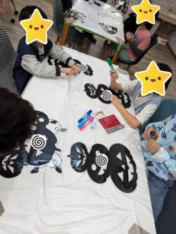スタッフと一緒に油性ペンでデザインをするお友達♪