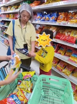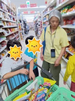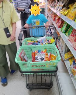 カートを押したり、お菓子を選びました🍫
