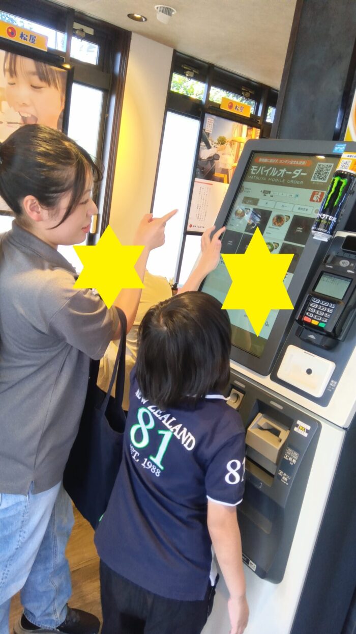 まずは、みんなで松屋にお買い物…!