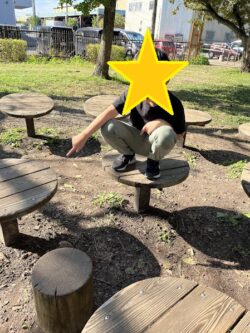 つぶれた銀杏を虫と勘違いして、見つめる子も( ̄m ̄〃)ぷぷっ!