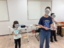 楽器の演奏では、楽器を試しに鳴らして見ながら、どれにしようかみんな真剣に悩み中、、、