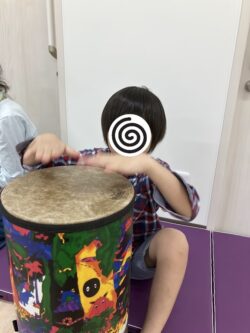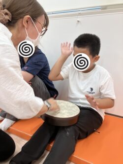 その後は先生のリズムに合わせて一人一人、上手に太鼓でご挨拶!!