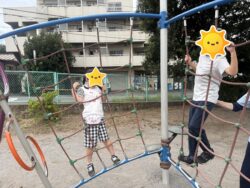 ・ネット登りや、うんてい!手足にしっかりと力を入れてバランスを取りながら忍者のように進みますね☆