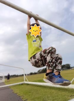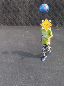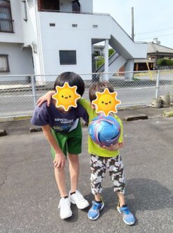 午前中は近くの空き地でサッカー⚽をしたりバランスボール何秒乗れるかをしました😲