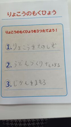 宿泊体験学習に行く前に、皆で【りょこうのもくひょう】を立てました。