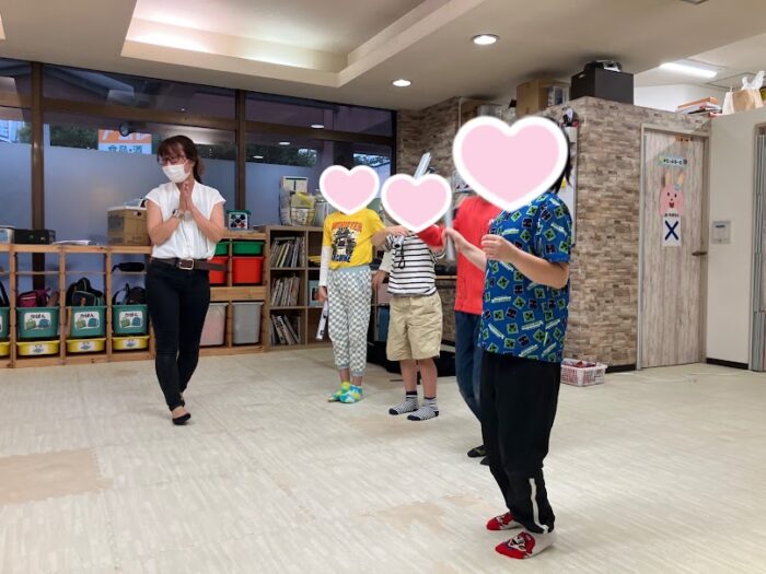 そのあとは、先生のリズムに合わせて、上手に太鼓でご挨拶!!