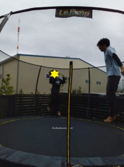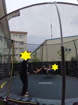 バウンサー以外にもトランポリンをして遊ぶ場面も♬