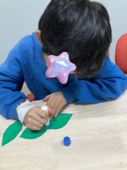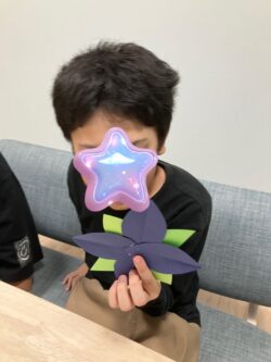 前々回のアトリエまはろで制作したはなびらと葉っぱを重ね合わせて