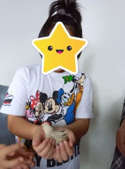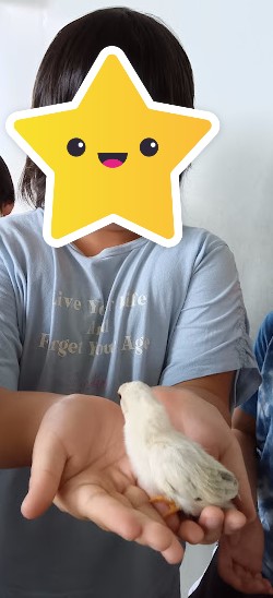 児童館で飼育しているニワトリがおり、最近、ヒヨコが生まれたので、見せていただきました。