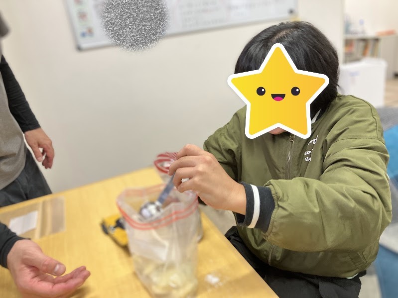 本日の課題は、クッキングでおやつに”じゃがもち🥔”を作りました。