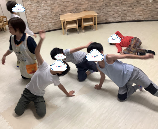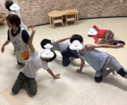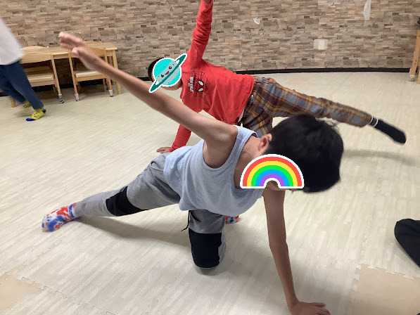 大人でも難しい体勢をいとも簡単にできるのは子供ならでは♪柔軟性が違いますね💦
