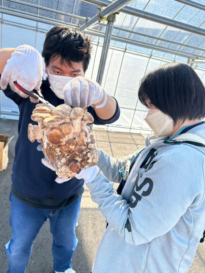 午前中はしいたけ栽培で袋詰め🍄