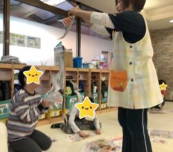 本日の課題は「紙遊び」を行いました。