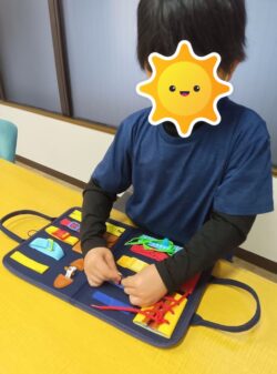 個別課題でビジーボードに取り組んでもらいました。バックルの開け閉めも上手に出来ています👏