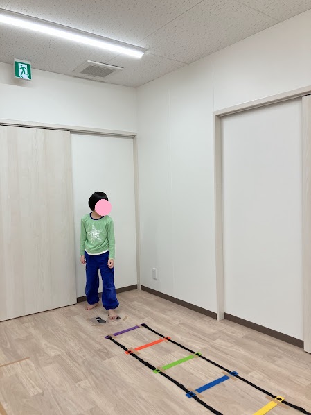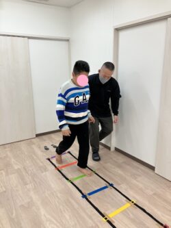 ①ラダーを一歩一歩、線を踏まないように歩く練習