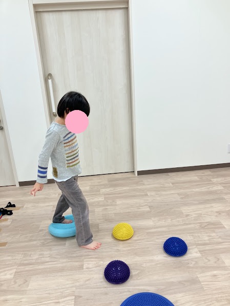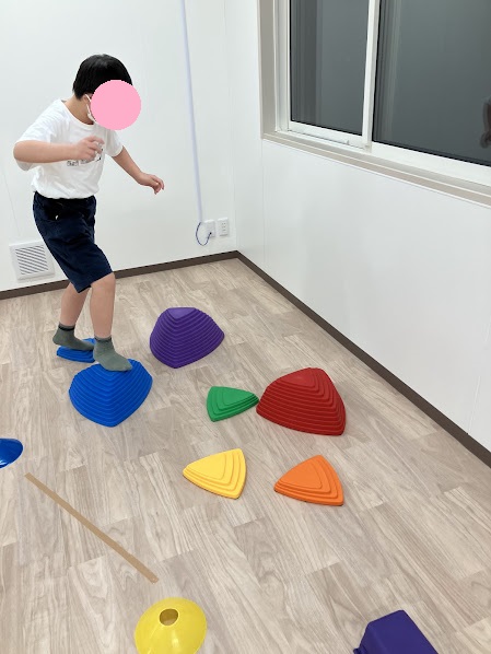 ④高さがバラバラな少し高いバランス飛び石で高さを克服