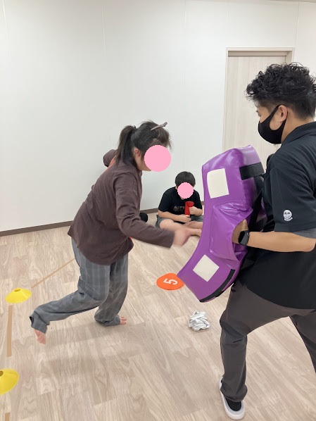 ⑤一本橋でを渡り切ったら最後はお友だちの前でミットにパンチorキックでかっこよく決める