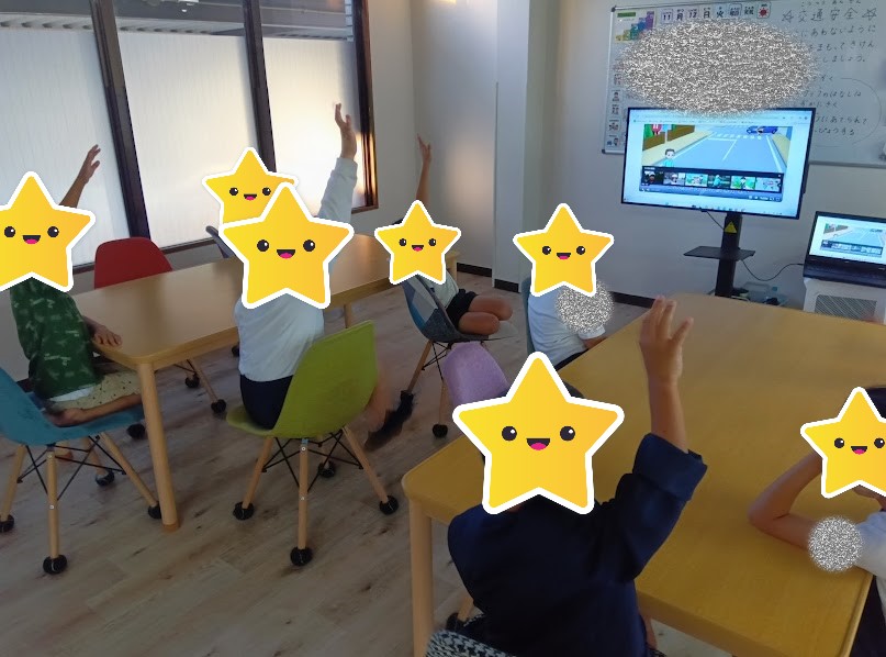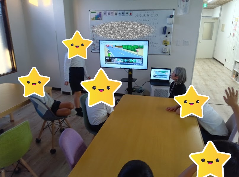 課題中のお約束の話の後は、動画を見て道路にはどんな危険があるか予測してもらいましたよ。