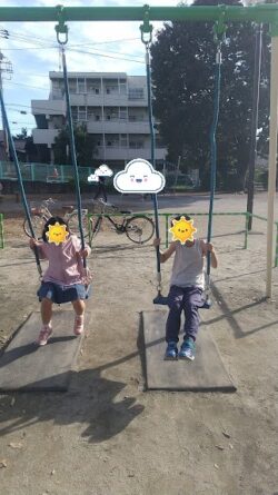 本日の課題は、「公園遊び」ということで、近くの公園に遊びに行きました。