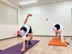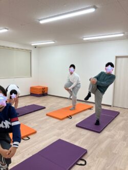 まずは動画を観ながら体幹トレーニングを行いました