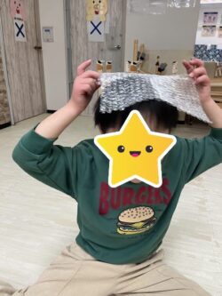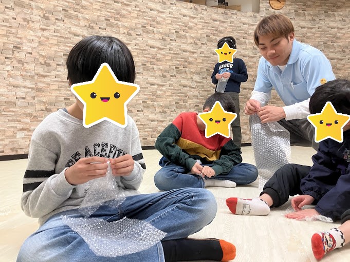 今日は梱包材として使われる「プチプチ」を使って遊びました。