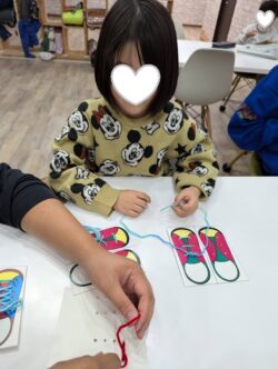 本日は、『微細運動』ということで、ひも通しを行いました!