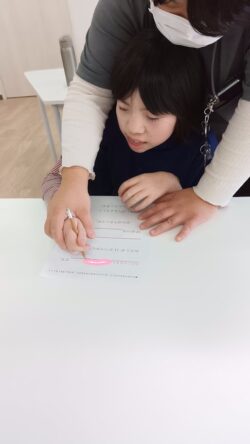 とじっくり考えながら字の練習も兼ねて自己評価シートに書きかき✍