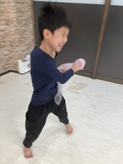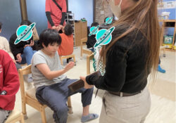 始まりは先生のリズムに合わせて、上手に太鼓でご挨拶!!