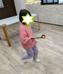 お玉に乗せたボールを落とさないように慎重に運びます😆