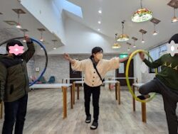 お友だちを手を繋ぎ、フラフープをくぐります👏
