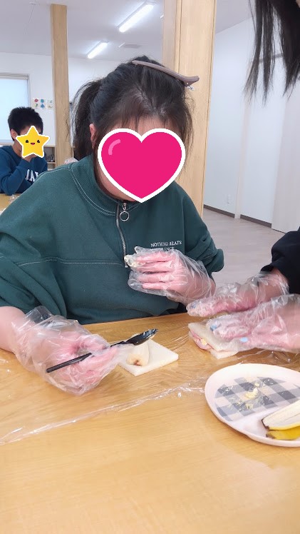 サンドイッチは、ハムたまごとチョコバナナホイップの2種類を作りました!