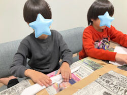 ②画用紙を幅3~5㎝ほどに切り、横半分に折る
