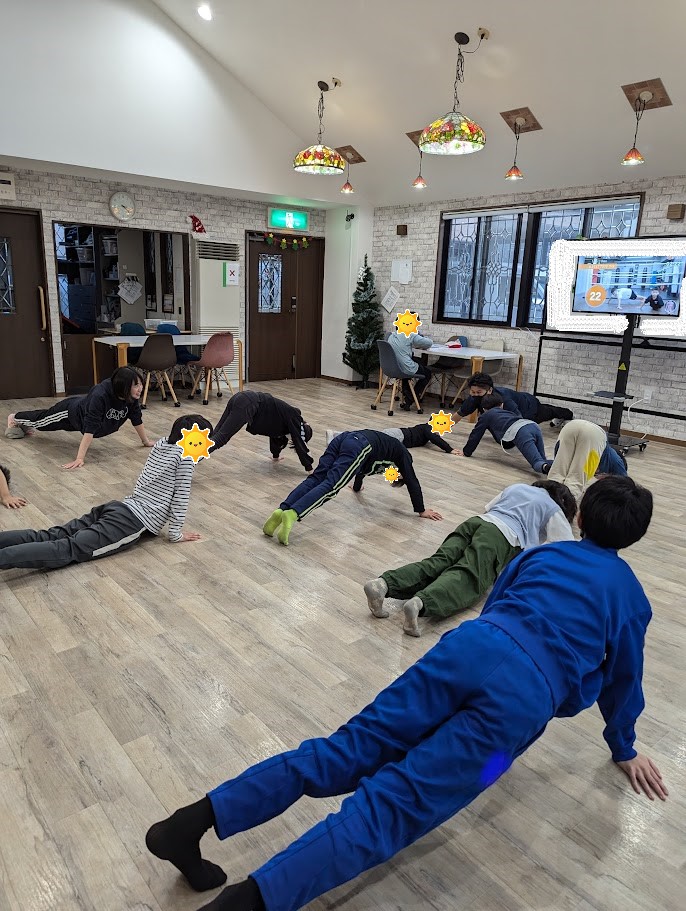 体幹を鍛えるトレーニングと、体全体の筋肉トレーニングを行いました。