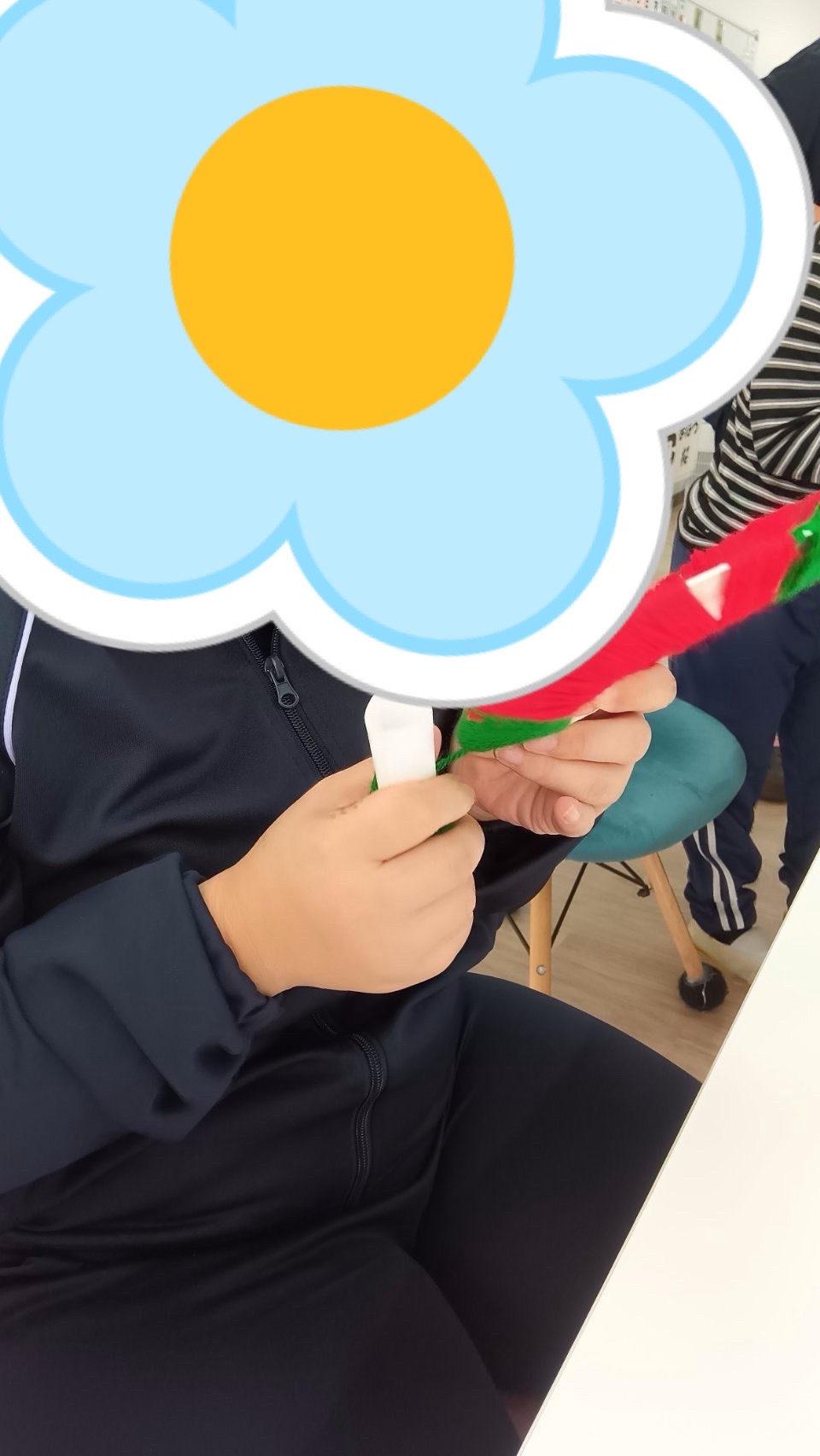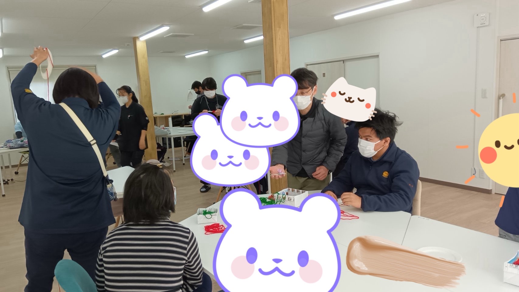 紙皿に毛糸を巻いたり、ビーズやポンポンをつけて飾り付けをしました♪