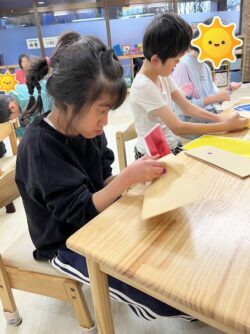 指先が器用なお友達はスルスルと、苦手なお友達はスタッフさんと一緒にゆっくりと取り組みます。