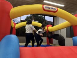 こちらは、スタッフが鬼役になりきって、中にいる子どもたちを捕まえようとしている様子です(笑)