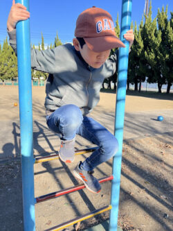 このお約束を守りつつ、ブランコ、鉄棒等、公園にある遊具で一通り遊ぶことができました!
