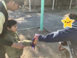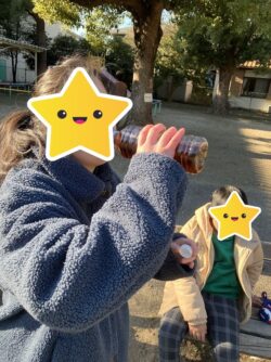 高校生のお友だちが、小学生の子にやさしく水筒を渡していました★