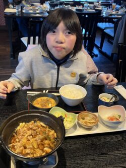 すき焼きを頬張って「おいしーーーーーい!!!」と満面の笑み😍