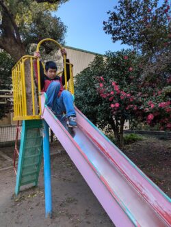 走ったり、滑り台で遊んだり、ブランコに乗ったりと