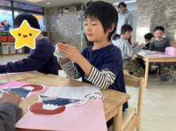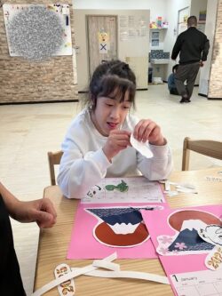 その後、富士山のパーツが配られたので、どこに貼ろうか考えながらペタリ…