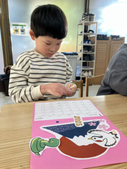 そして、「鶴」「2025」「ヘビ」のイラストを貰って、好きなところに貼ります。