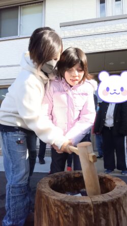 楽しそうに笑顔でお餅つきを楽しみました✨