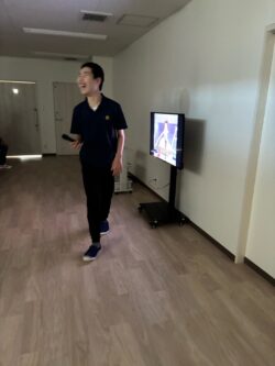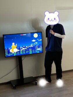テレビ画面に映った映像を観ながら体を動かしました👯