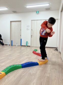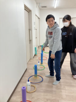 輪投げ・くねくね渡り・ラダーを使って楽しく体を動かしました✊