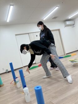 準備運動が終わったら楽しいビジョントレーニングがスタート!!