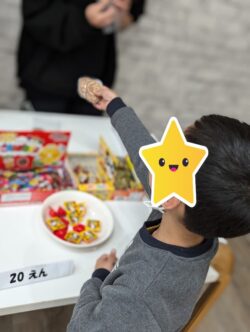 まはろ通貨を利用してお菓子を買ってもらいました。
