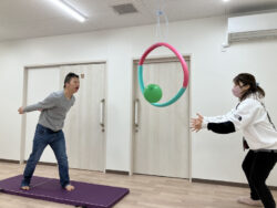 「くぐる」「渡る」「ジャンプ」「風船バレー」の4種目を行いました