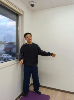 スタッフの真似をして投げます(^^♪