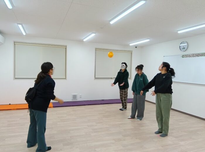 次は、スタッフとキャッチーボールをします。